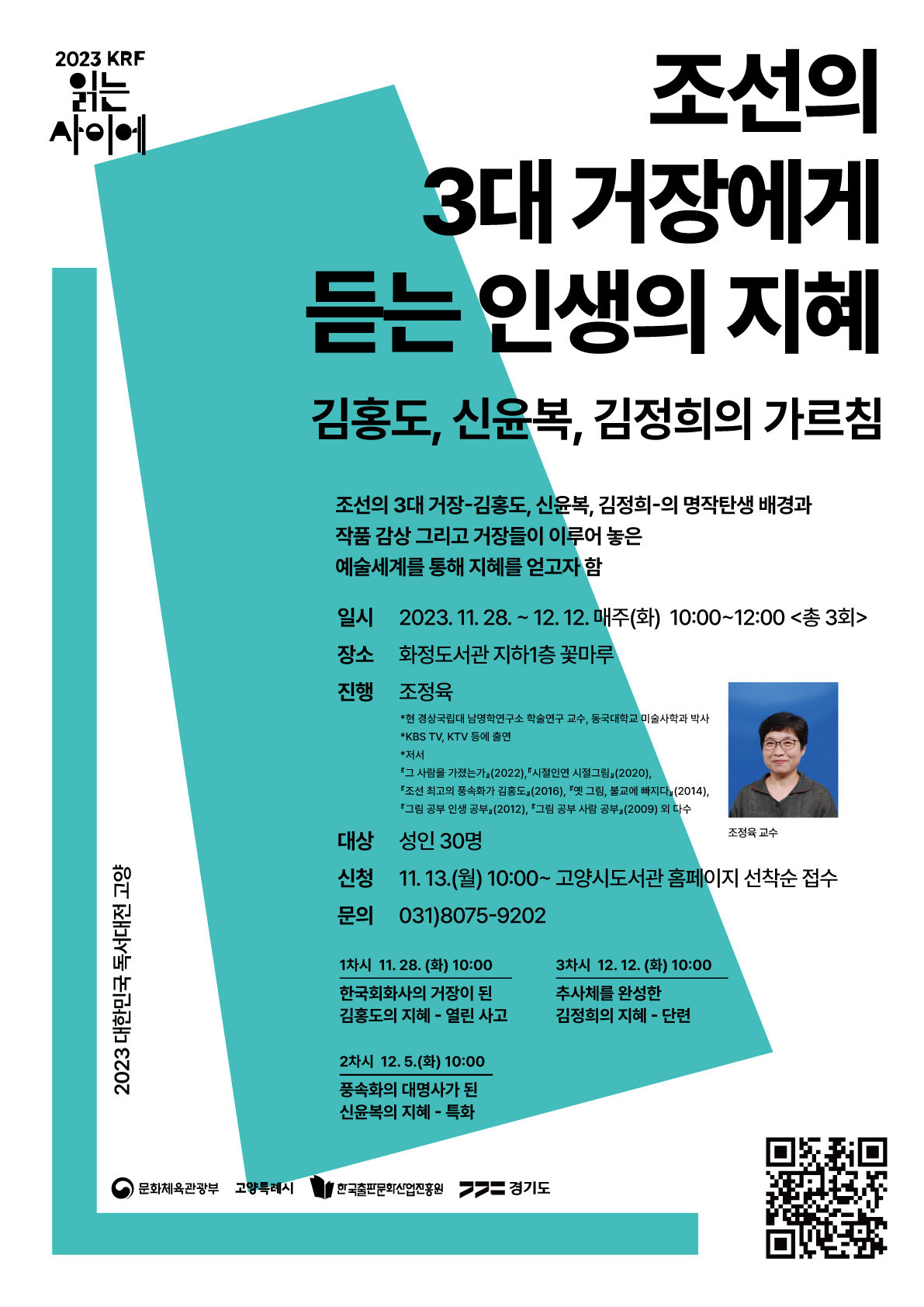 ○ 신청: 11월 13일(월) 오전 10시부터 고양시도서관센터 홈페이지 선착순 접수