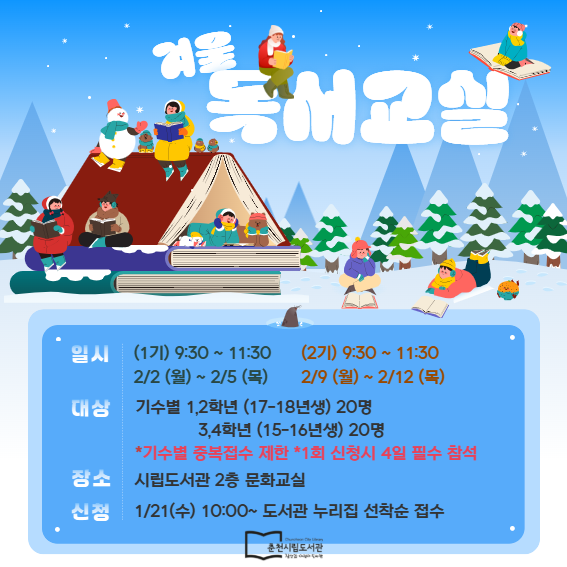 신청: 1.21(수) 10:00~ 도서관 누리집 선착순 접수