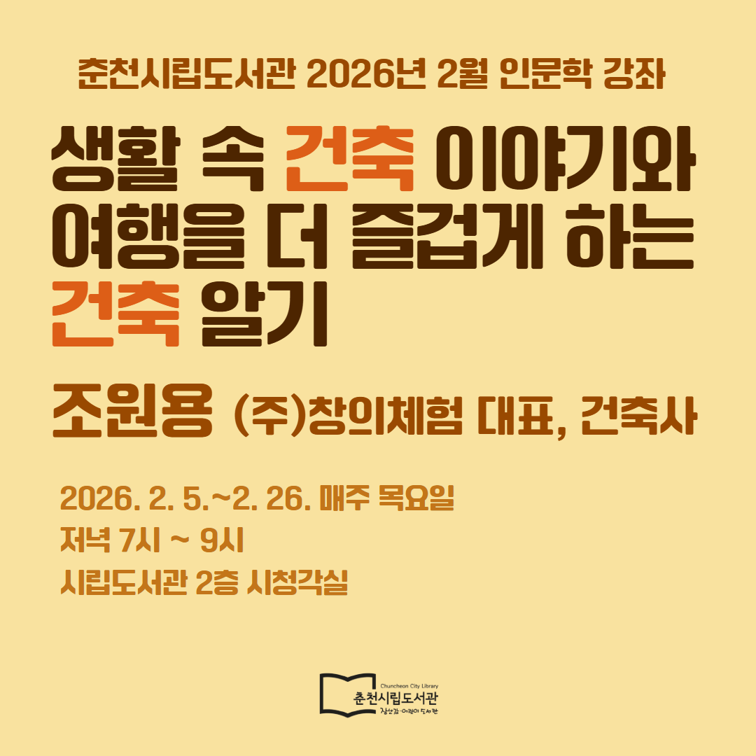 ○ 신청: 2026. 1. 20.(화) 10:00~ 춘천시립도서관 누리집 선착순 접수 또는 당일 현장 접수